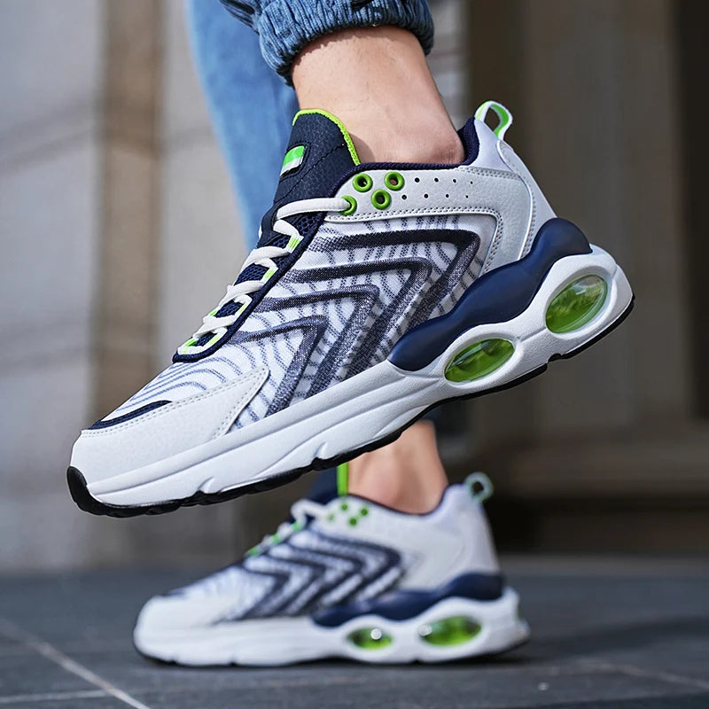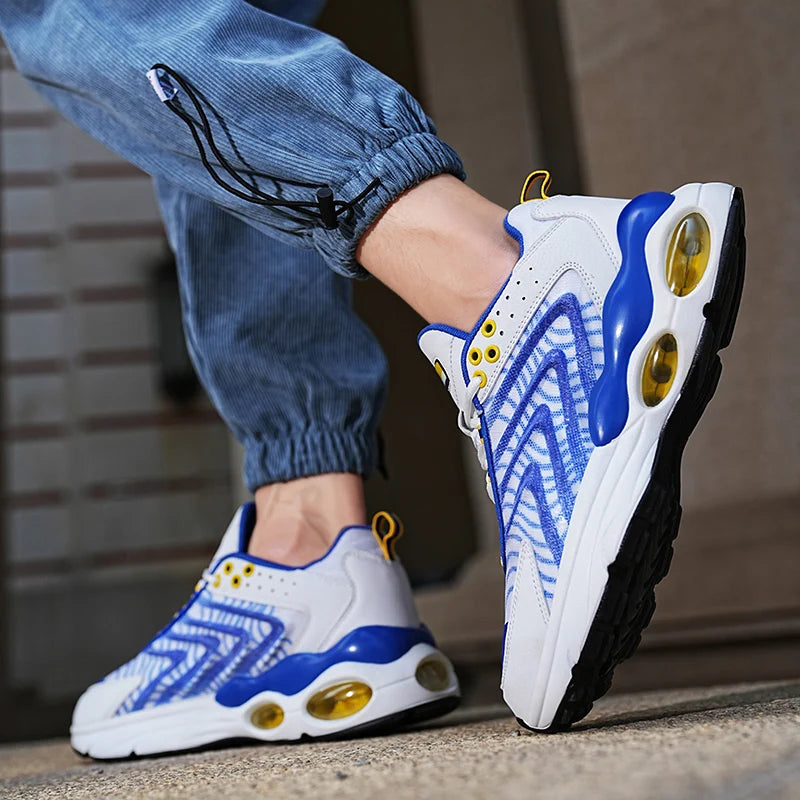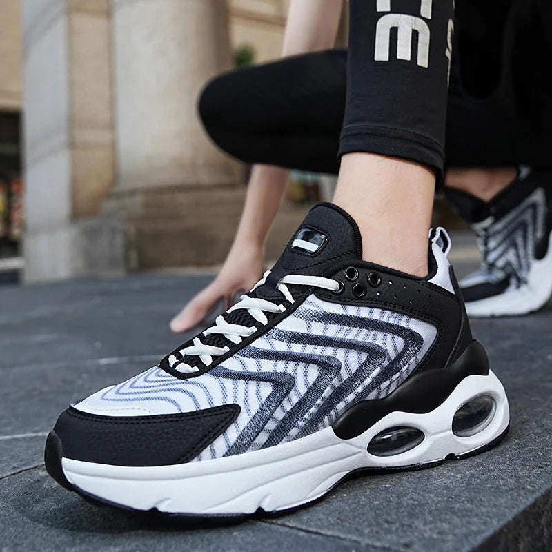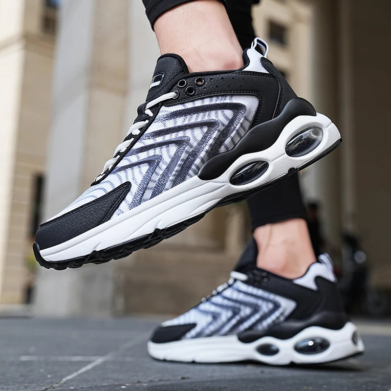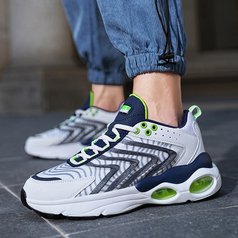 Baskets de course professionnelles pour hommes conçues pour allier performance et confort. Ces chaussures d'entraînement en maille respirante offrent une légèreté exceptionnelle et un maintien optimal grâce à leur système de laçage ajustable.