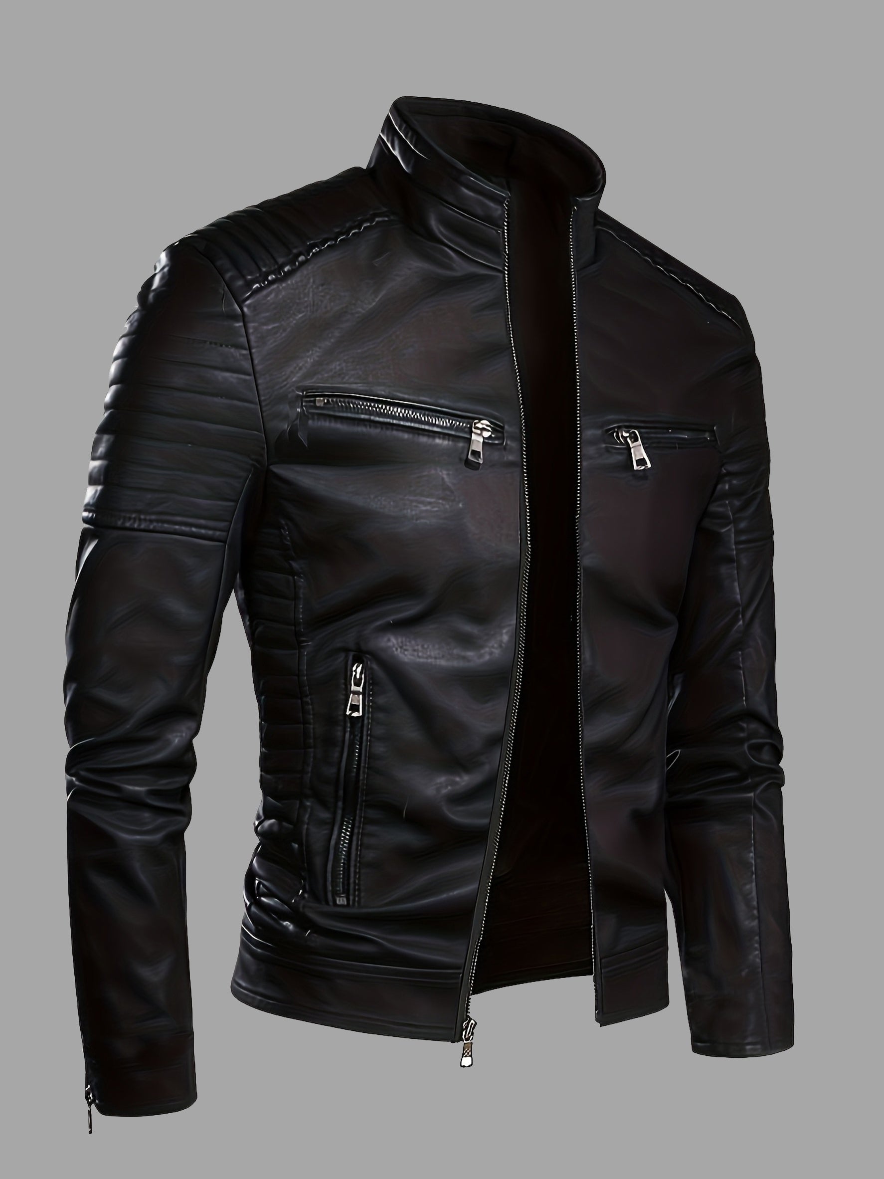 Adoptez le look biker avec cette veste masculine au style affirmé ! Conçue pour les hommes qui aiment allier élégance urbaine et esprit motard, cette veste est l'alliée parfaite pour vos sorties casual et quotidiennes.
